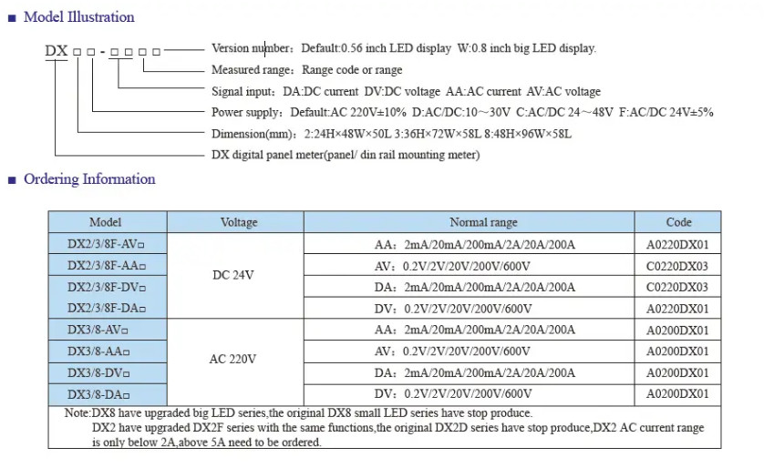 2/Thông số Đồng hồ đo áp(Vôn) DX3-AV600